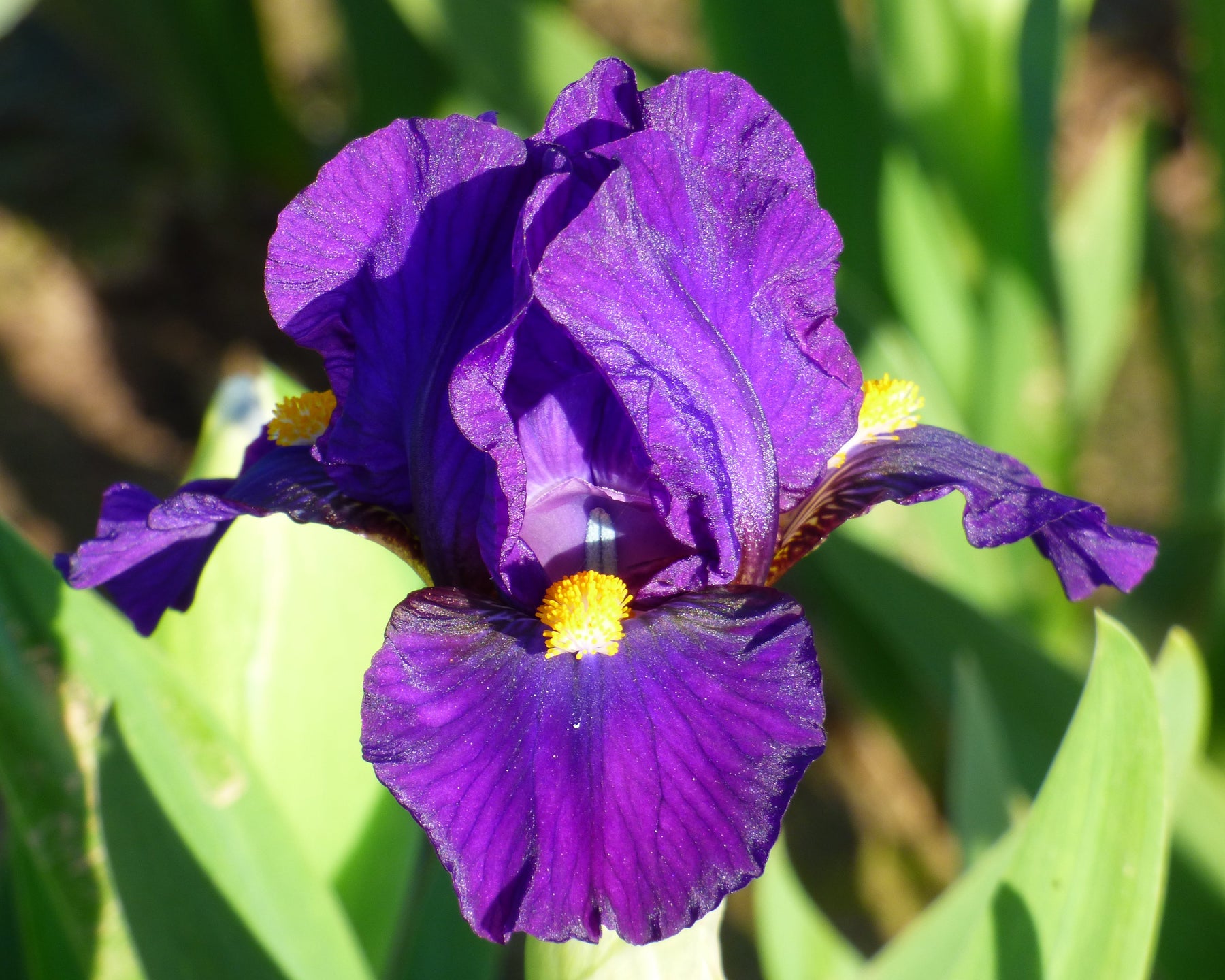 Standard Dwarf Bearded Iris: Iridescent purple veined with a darker blue-purple. Pronounced spicy fragrance.
