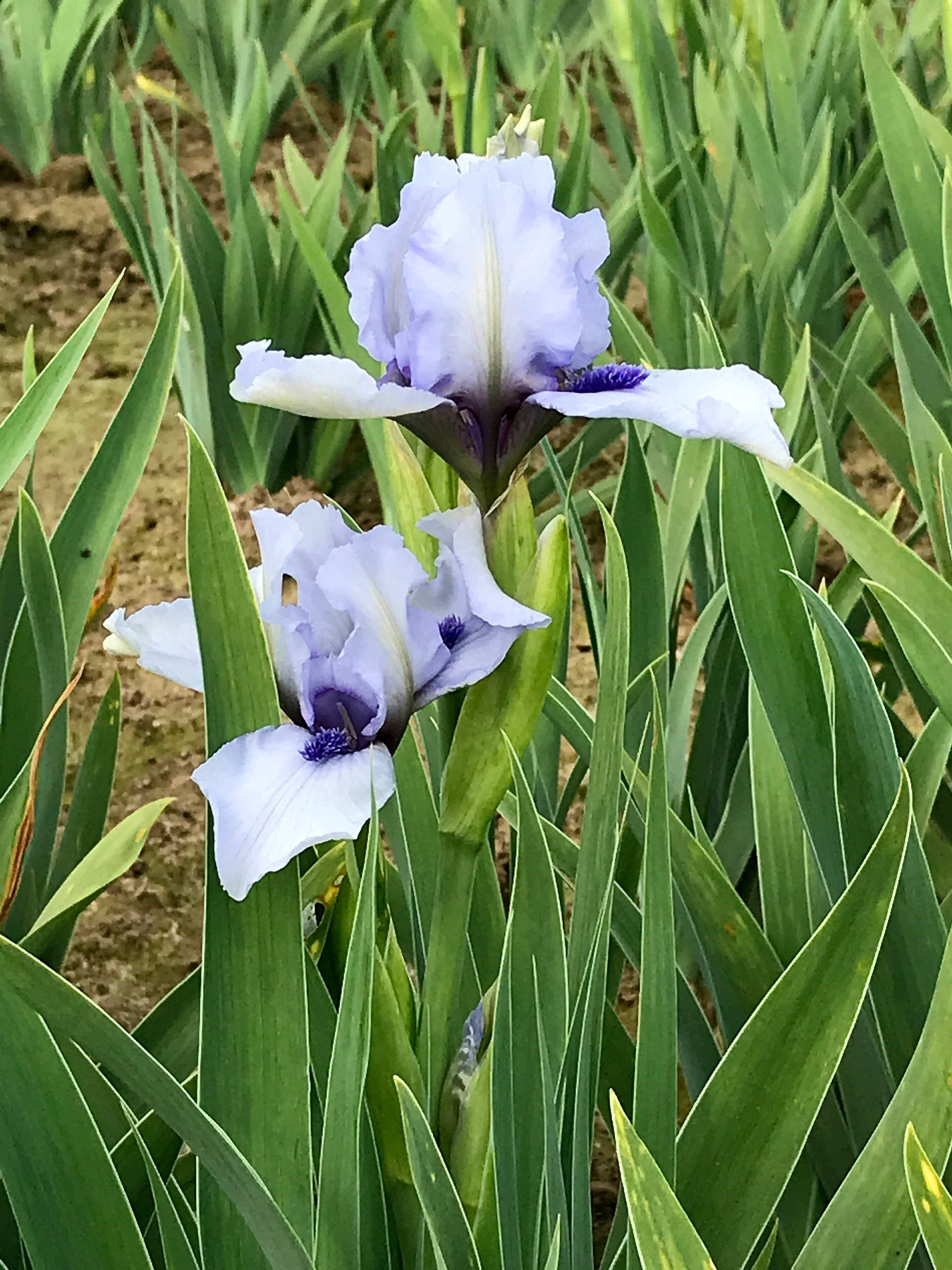 Standard Dwarf Bearded Iris: Light blue-violet self.