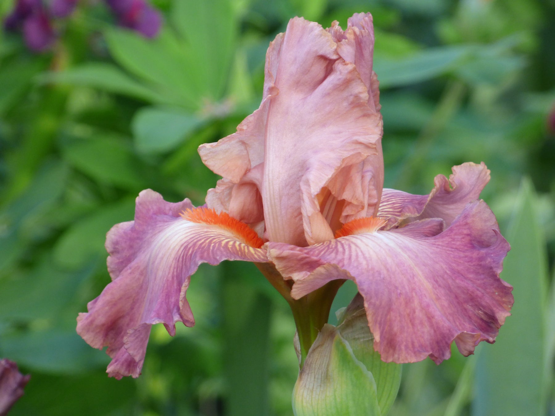 Role Model features striking rosy tan petals with a subtle peach influence, creating a sophisticated color blend. Its flowers are ruffled and darker on the upper petals, contrasted by a lighter area beneath the vibrant tangerine beard. This variety offers a slight fragrance, adding an elegant sensory dimension to its visual appeal. Ideal for gardeners seeking a refined iris with distinctive coloration and delicate scent.