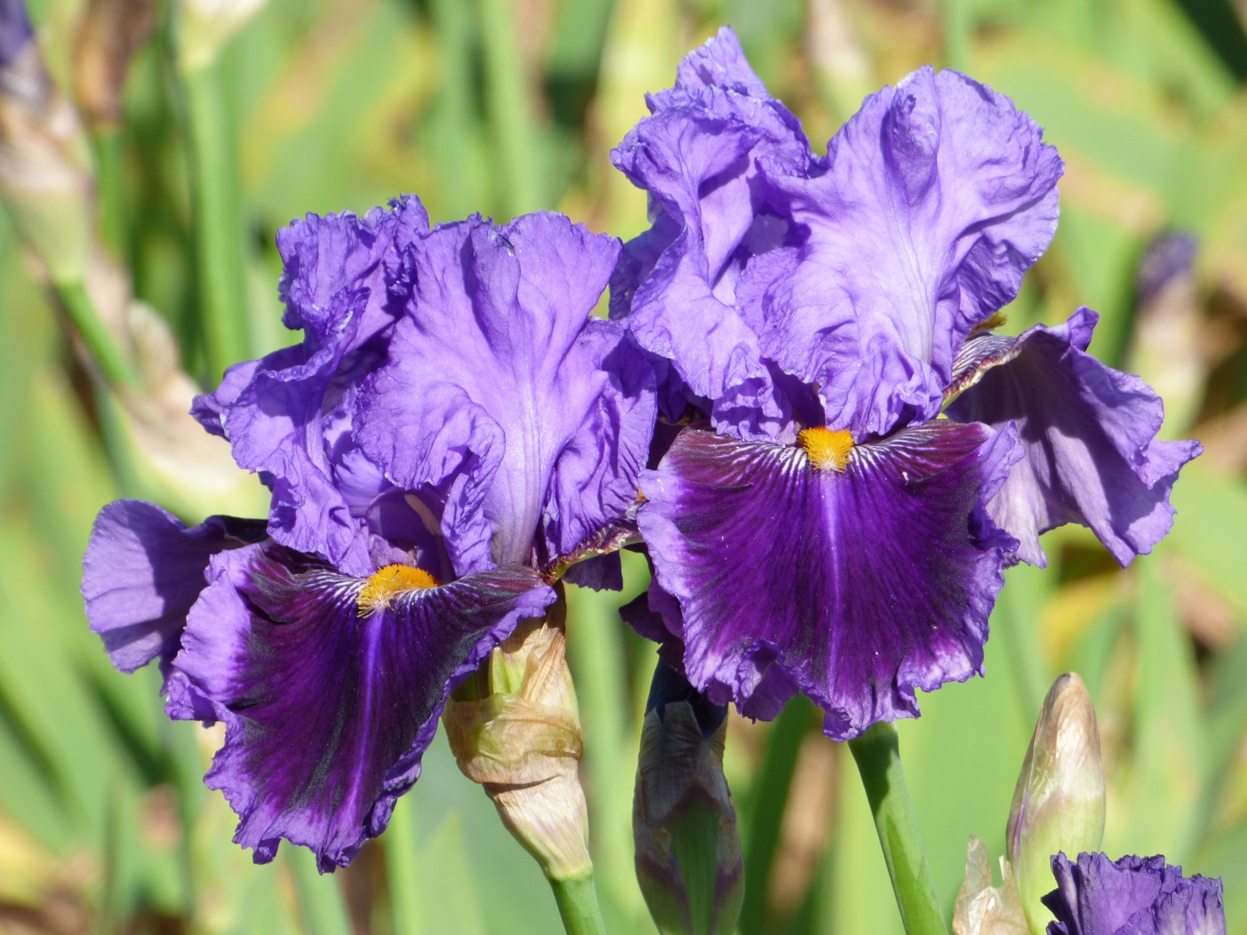 Standards amethyst-violet; Falls darker violet with lighter rim; yellow beards; ruffled; slight fragrance.