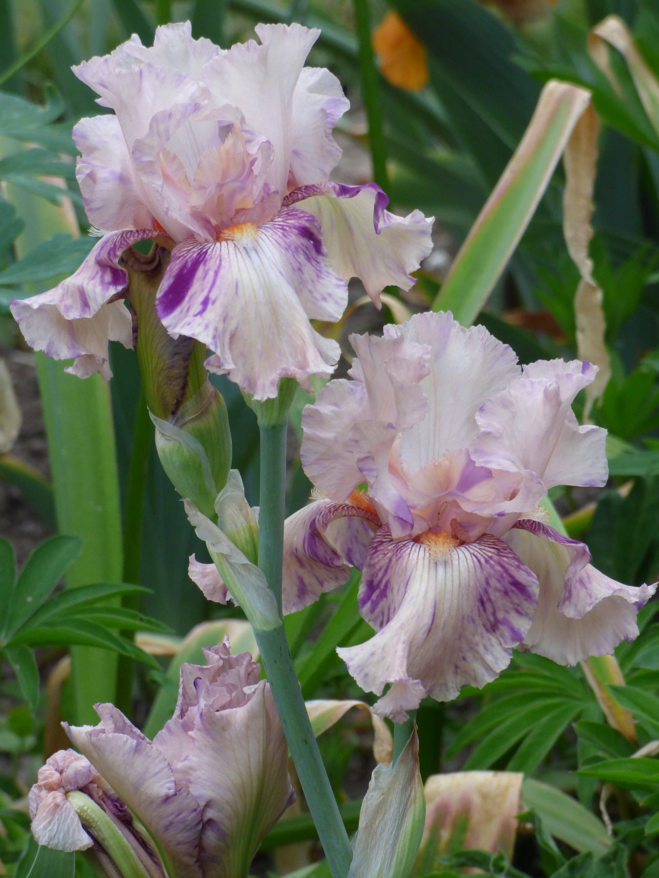 Mauve streaks and splotches overlay Peach Jam's pale pink petals. Cheerful orange beards add a focal point to this sweet spread of color. A slight fragrance enhances its appeal.