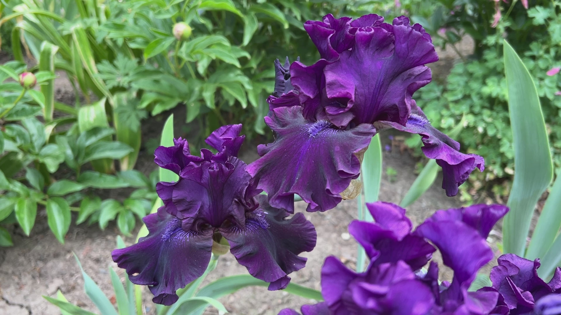 This show bench winner is one of our best ruffled darks coming from Dykes Medal winner, Hello Darkness. It will literally grab you with its wide ruffled petals, somber violet-purple hues and velvety texture. See how the discreet beards are highlighted by just a dash of white. Best of all, its easy to propagate and has as exceptionally vigorous bloom habit. Prolong your bloom season with 10-12 triple-socketed buds on 3-4 branches. Don't be caught without this one.