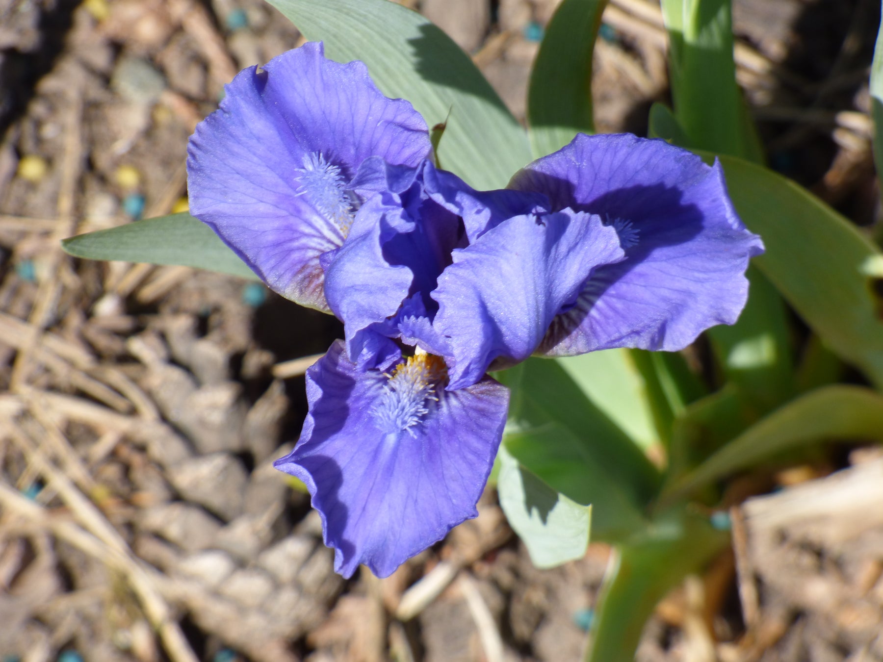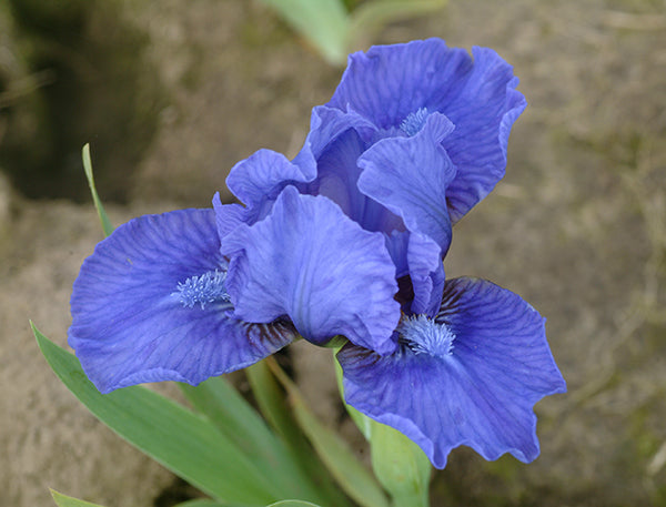 Standard Dwarf Bearded Iris: Deep navy blue self; slight fragrance.