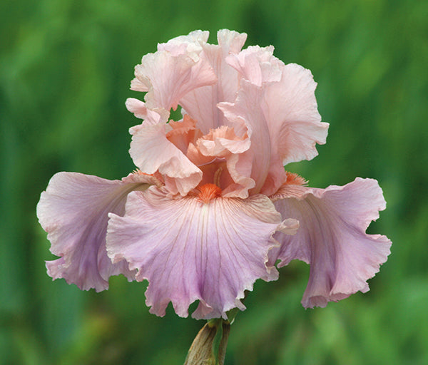 Bellini is named after a cocktail, which was named in honor of the artist, Bellini, who perhaps wished for a pink Iris. Soft pink pastel colors exude an aura of contentment. Enticing pale pink standards complement stiff falls which open lavender, fading to pink. Bellini offers 3 flowers open at once. This seductive charmer has orange beards and a strong quiet allure.