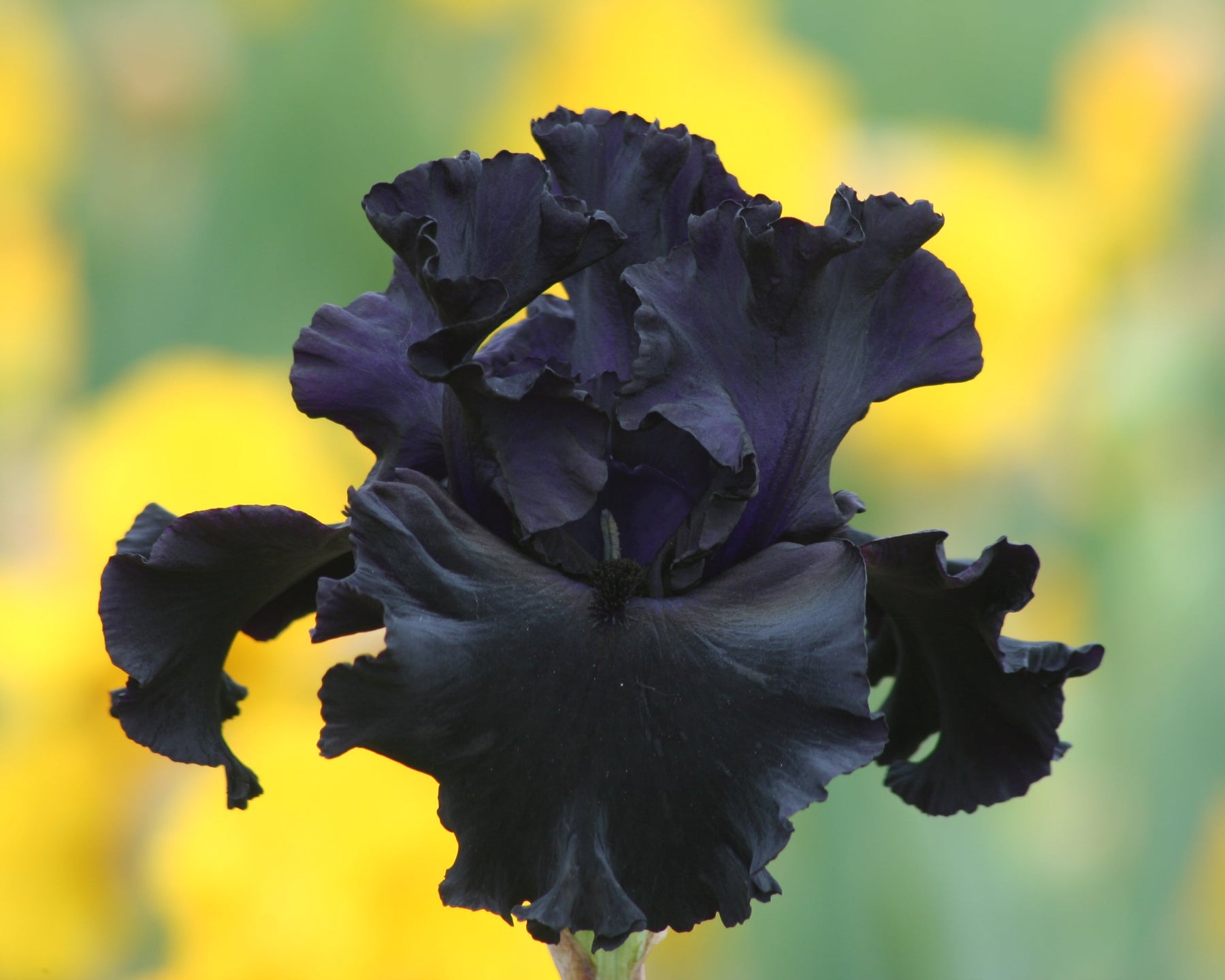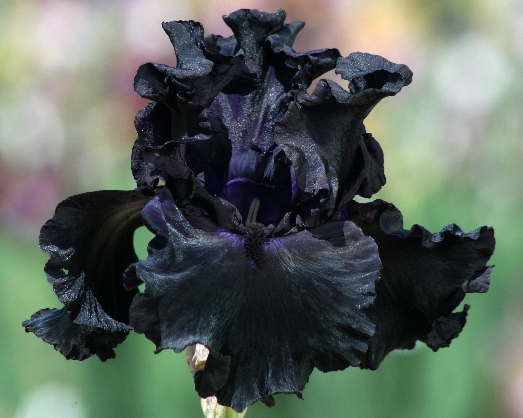 Aside from a slight trace of yellow on its beards, Black Mirror, as shown in our photo, is as black as the inside of a closet. Broad at the haft and silky smooth, this child of Midnight Oil features marvelous rippling as well as stippled falls. Its balance and proportion are ideal, making this finely tailored raven-black, irresistible.