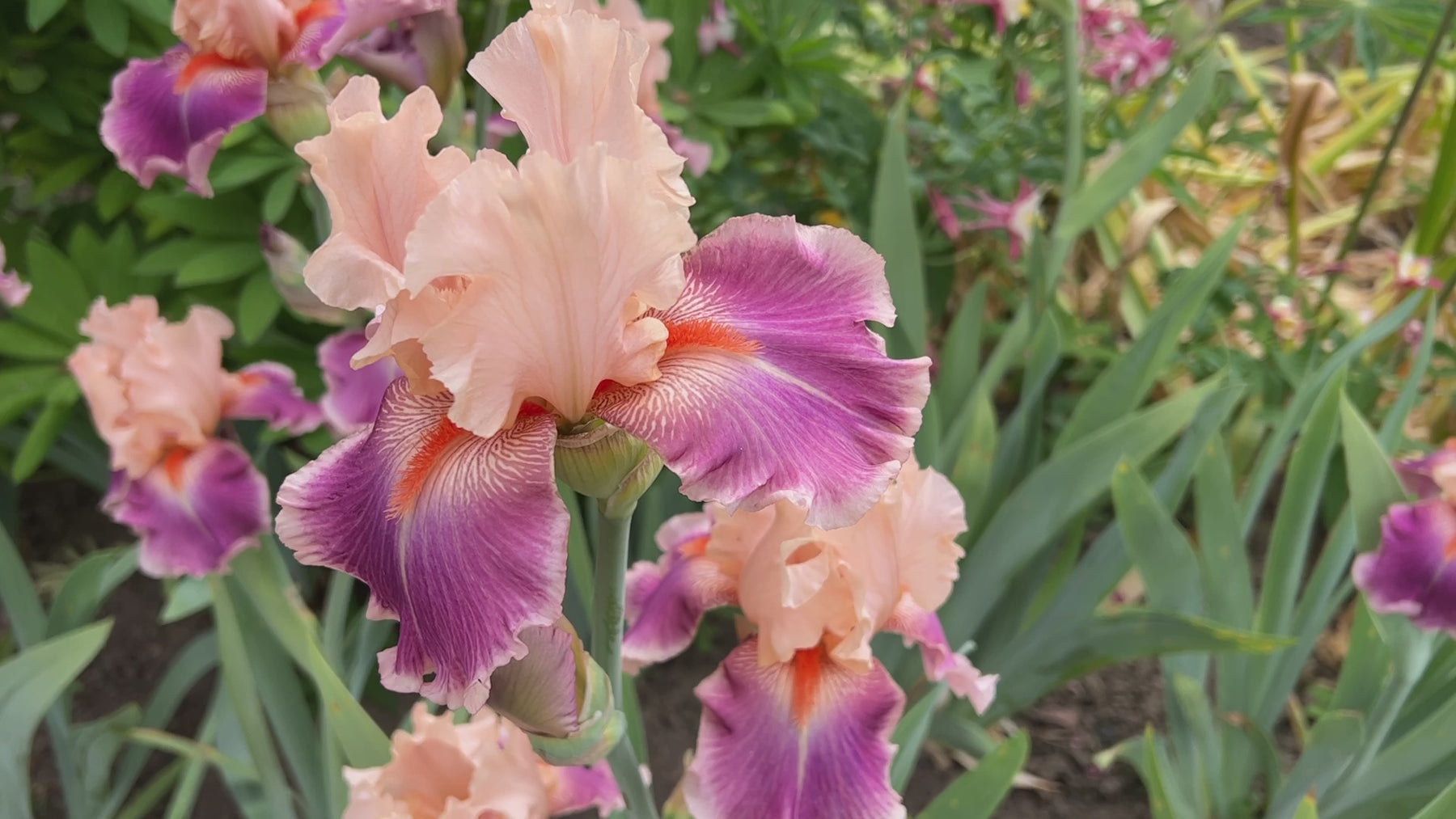The flamboyance of this dazzling spellbinder will enchant you, like a Siren's song. Warm pink delicately blends with luscious apricot in its standards. The flaring falls proudly display a striking 1" band of rosy magenta around a large spot of the same apricot-pink. Our picture accurately portrays the iridescence of the bright tangerine-orange beards. This exciting combination of color makes us tick. Triple-socketed buds yield 9-11 blooms per stalk and guarantee three weeks of bloom.