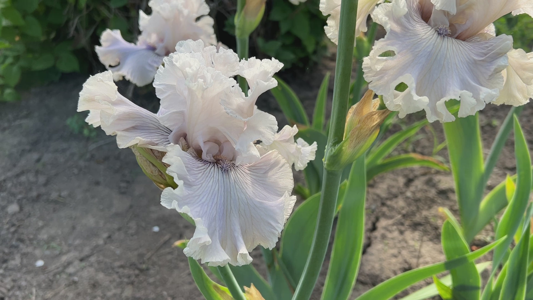 As shown in our photo, Haunted Heart’s color, best described as having gray-white standards with pale purple-washed falls is a unique, subtle color. Its heavily ruffled form, light lacing and coloring are impeccable. This must-have floral wonder is a great parent as well.