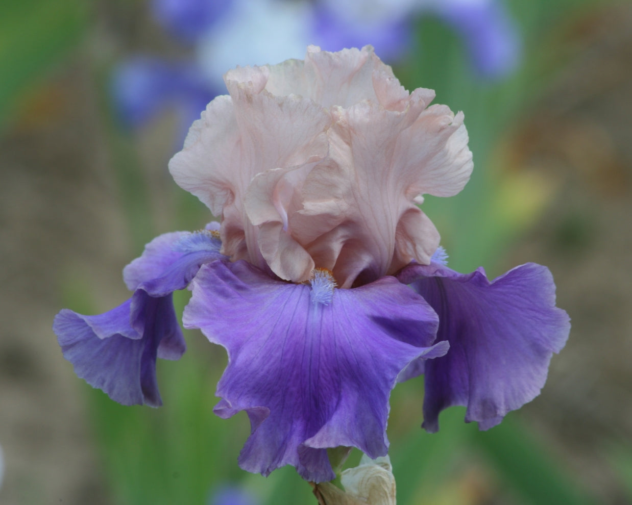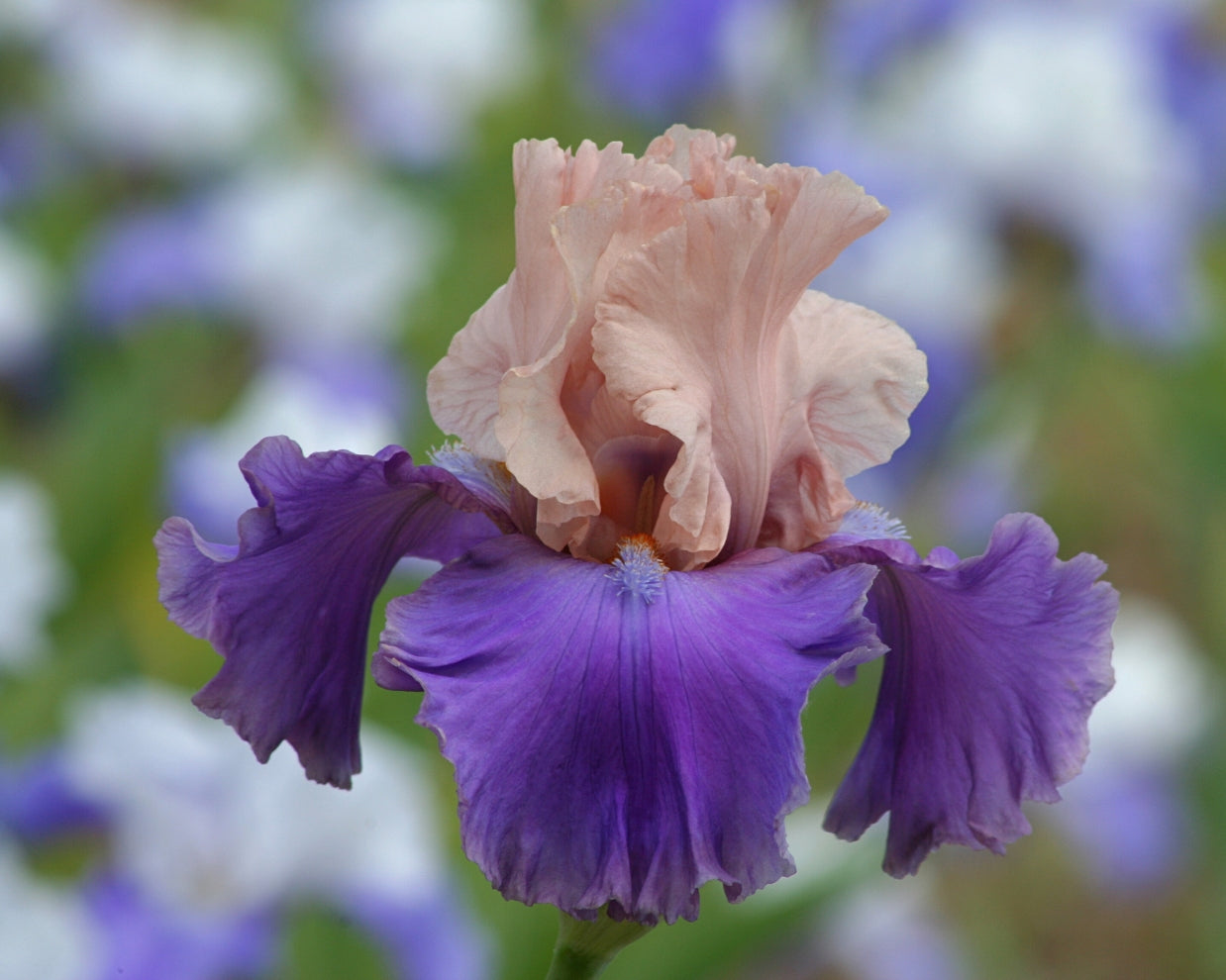 Billowing ruffles emanate from this pink-lavender bicolor. Poem of Ecstasy's huge flowers are held on strong well-branched stems. See how nicely the clear peach-pink of the standards complements the smooth deep lavender of the falls.