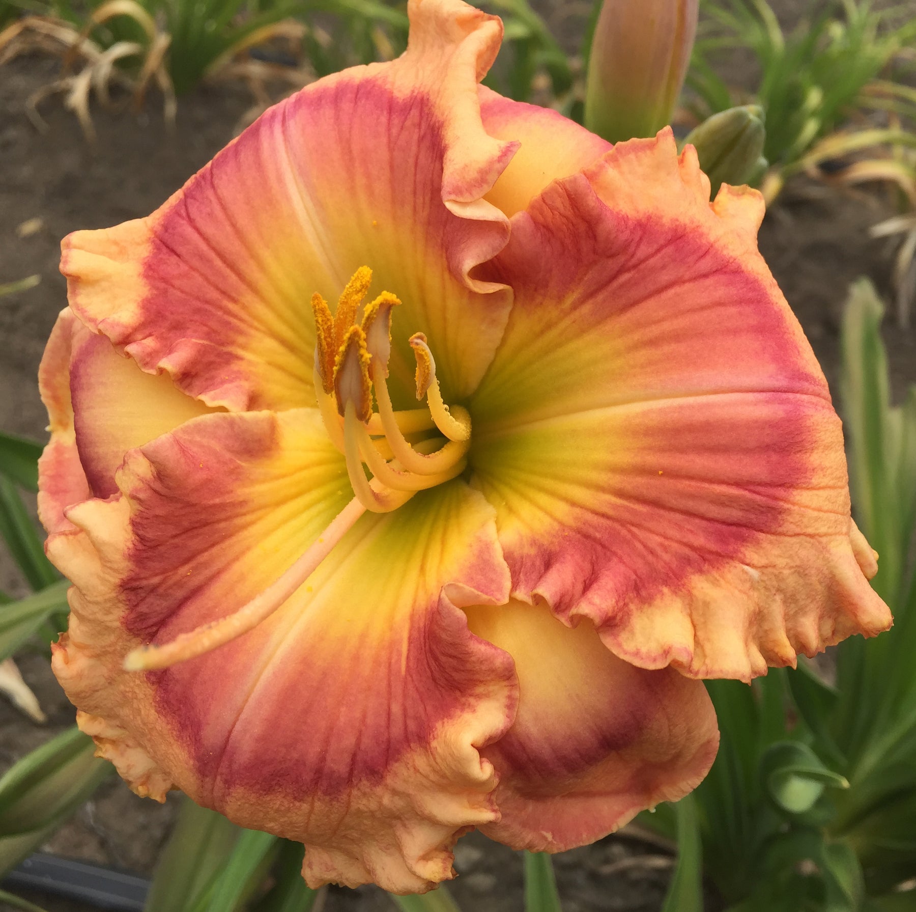 Consequential is a semi-evergreen tetraploid daylily featuring 5.5-inch diurnal blooms with muted pink petals. The flowers display a large, diffused reddish maroon eye and a yellow throat, with round, recurved petals that add elegance to its form. This cultivar produces 24 buds across two branches, offering a generous and attractive floral display. Derived from seedling P903A, Consequential combines subtle coloration with reliable growth, making it a valuable addition for gardeners seeking both beauty and performance.