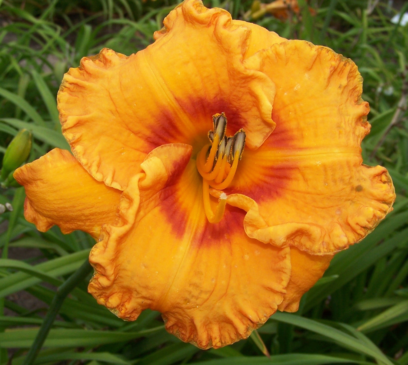 Oktoberfest is an early mid-season reblooming tetraploid daylily with semi-evergreen foliage, standing 37 inches tall. It features 5 3/4-inch flowers in a brilliant deep red-orange color with a red eye. Known for its exceptional performance, this cultivar thrives in both hot and severely cold climates. Non-fragrant and bred from Bill Norris and Fooled Me, Oktoberfest offers gardeners a vibrant and resilient addition to their collection.