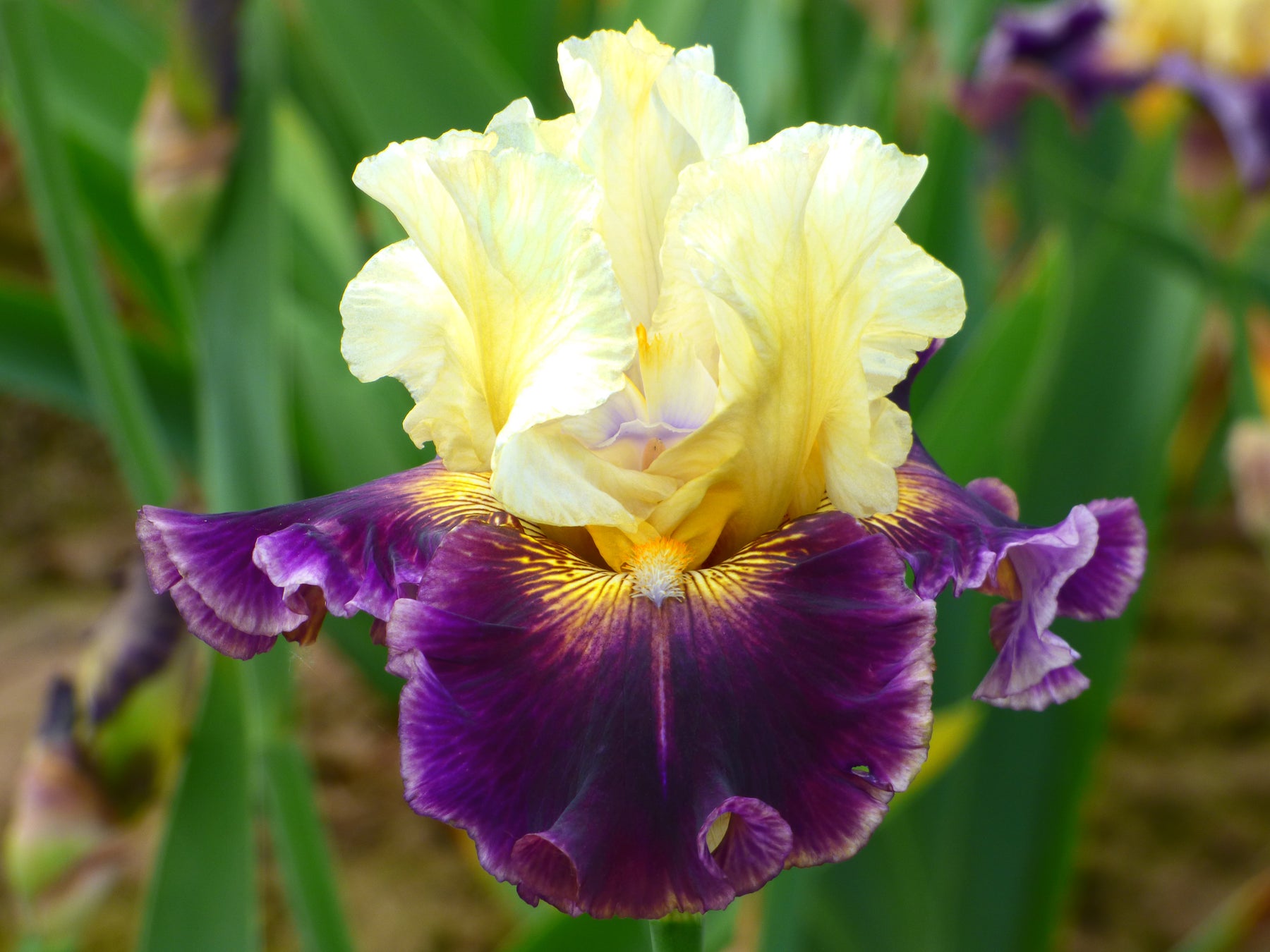 At a glance, Frenchglen embodies strength. Like the hardworking cowboys and ranchers in Southeast Oregon, home of Frenchglen, sturdiness is as plain as a bale of Harney County hay. Healthy vibrant plant growth, erect 41” stems, and pronounced form and substance - clearly set this apart as a first-class iris. The mixing of delectable gold and pale yellow in the billowy standards is enjoyable. With the falls, we’re at the opposite end of the spectrum. Melded dark purple violet tones saturate the petals, corralled by a double looping lariat of orchid and lavender. This fragrant luminata meets your stare head on, as shown in our photo. Frenchglen has a way of exerting quiet pressure to find a place for it in your garden.