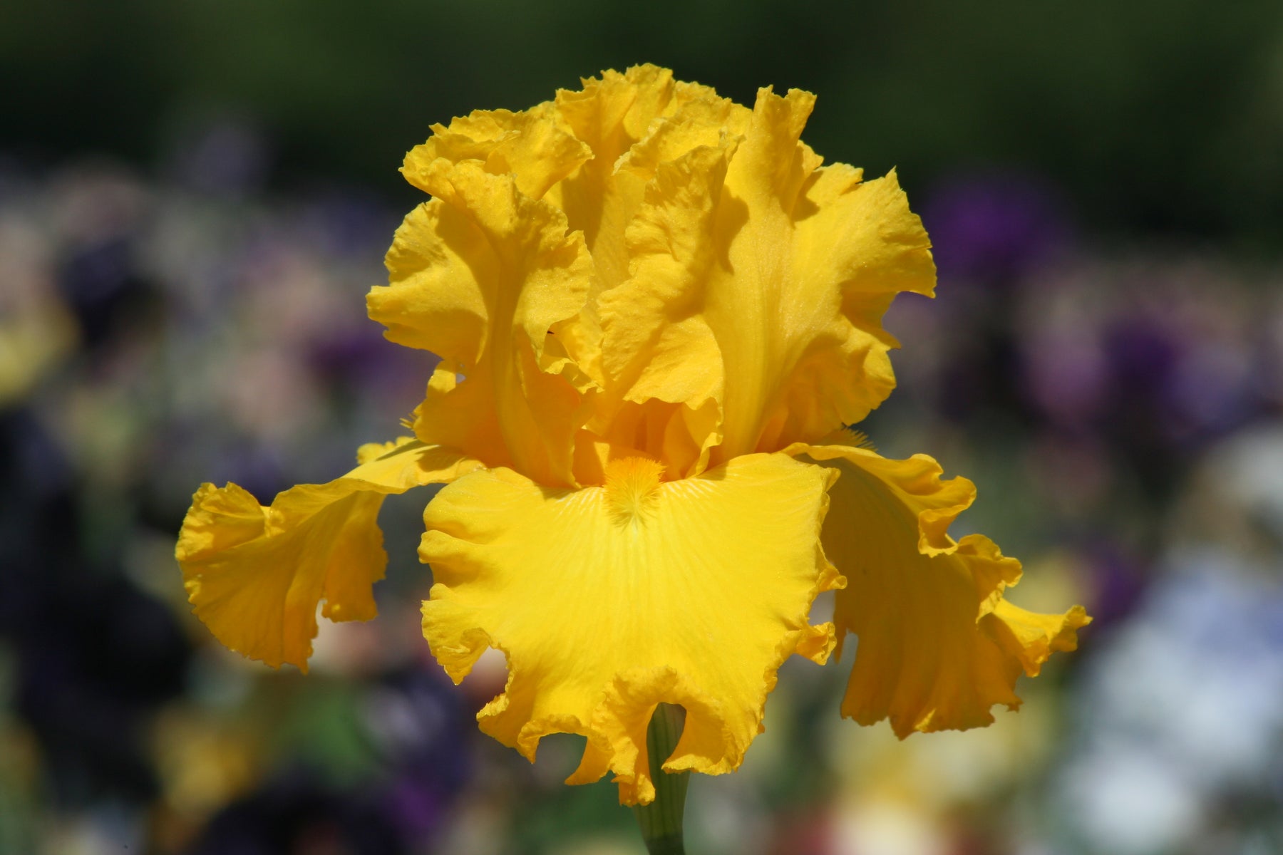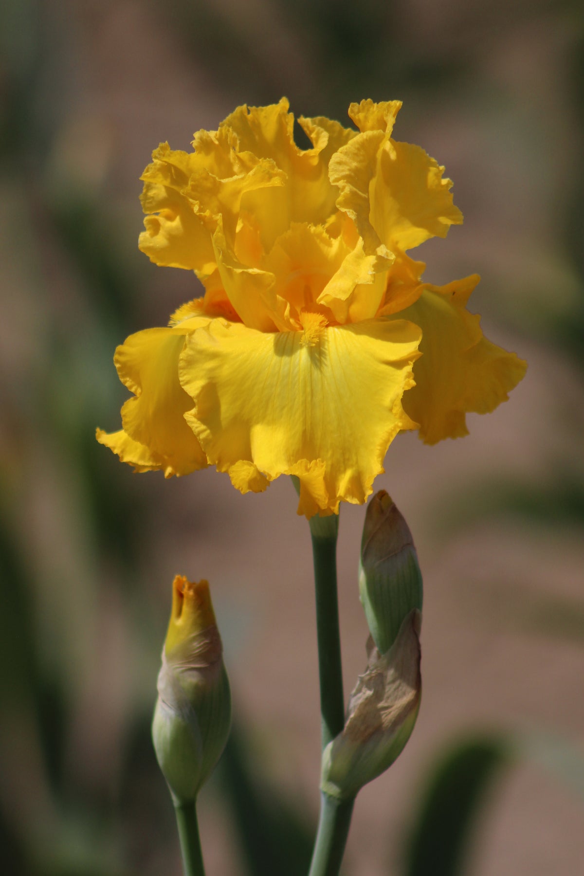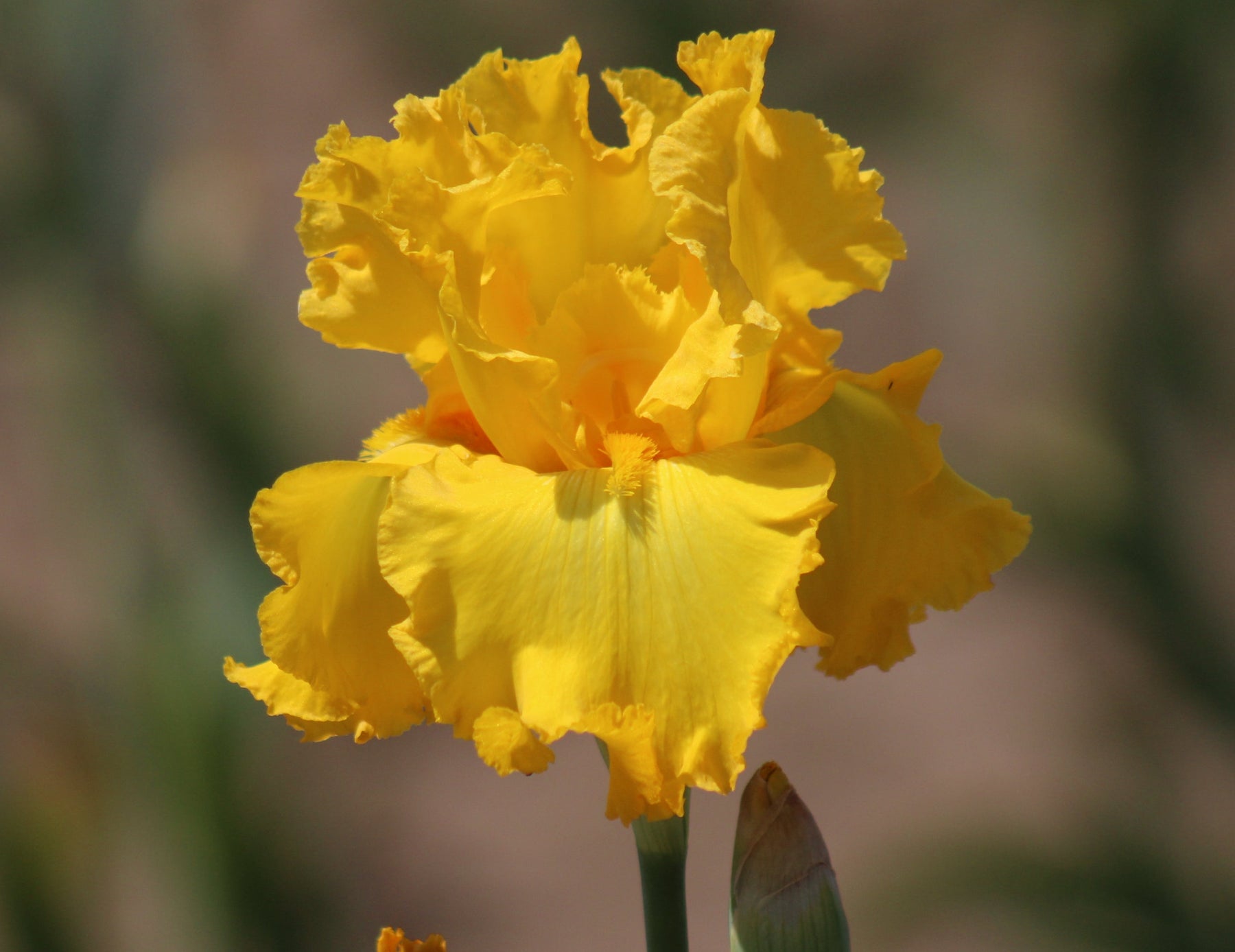 Tall Bearded Iris: Completely saturated in bright yellow, beards and all, Garden Time glows on a sunny day. As shown in our photo, Garden Time has perfect form. Large flowers unfurl atop 35" high stalks. Garden Time is named after Oregon's popular weekly television gardening program. The hosts of the show are well known for their exuberant and fun-loving personalities. Just like our Garden Time, they glow on a sunny day. Garden Time boasts impressive genes, descending from Dykes Medal Winner That's All Folks.