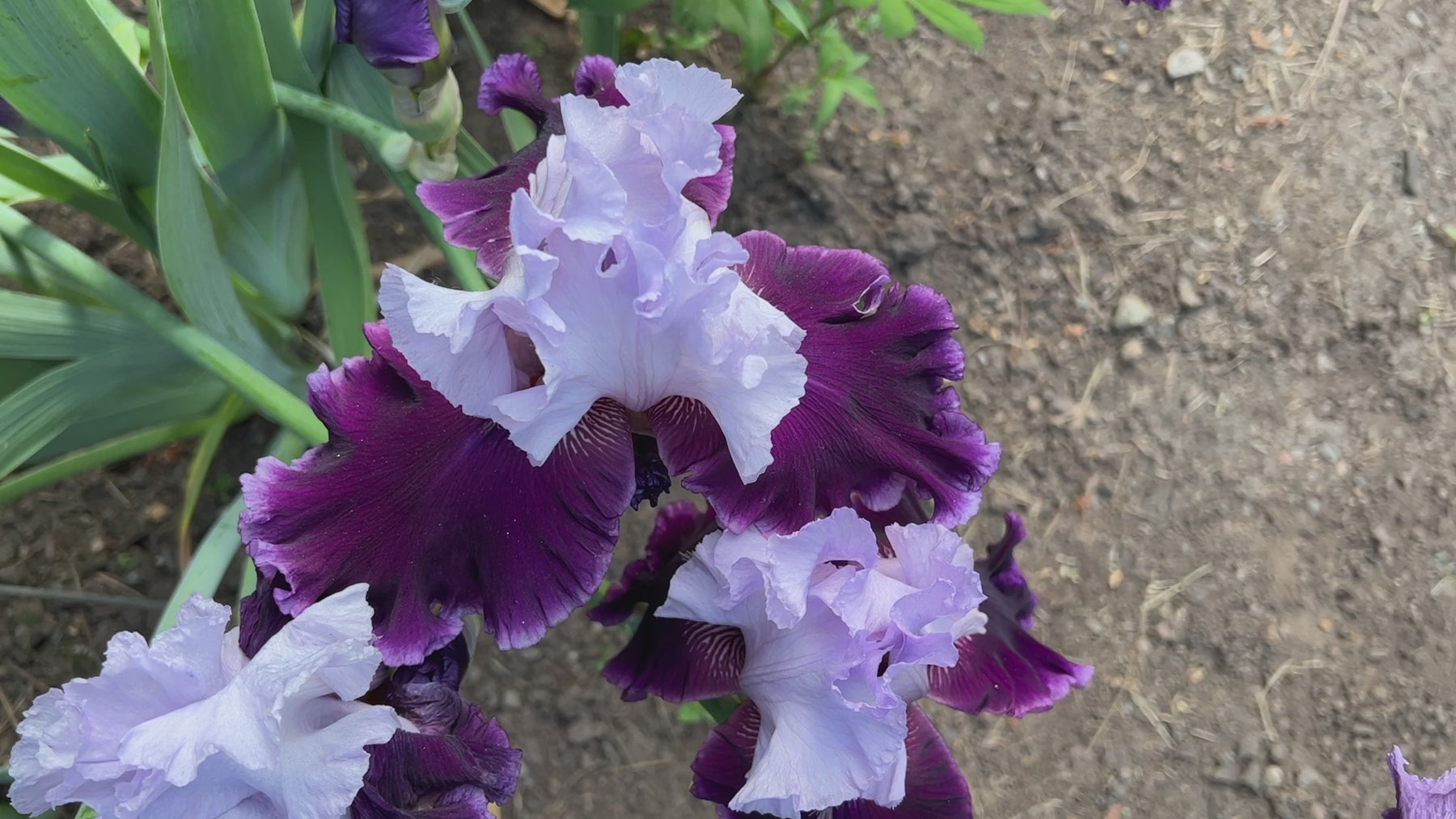 Our Lone Wolf does indeed prefer solitude. Nevertheless, in the presence of other varieties, it doesn't sulk. Rather, Lone Wolf performs spectacularly. Loaded with flowers, Lone Wolf is bursting with 8 flowers on strong and healthy 3-branched stalks. Its rich substance is plain to see in the velvety-finished falls. Notice in our photo how the light purple border on the falls reinforces everything. The closed moody lavender standards are reflected in the eyelash veining surrounding the orange beards. A stunning neglecta, seen early in the bloom season.