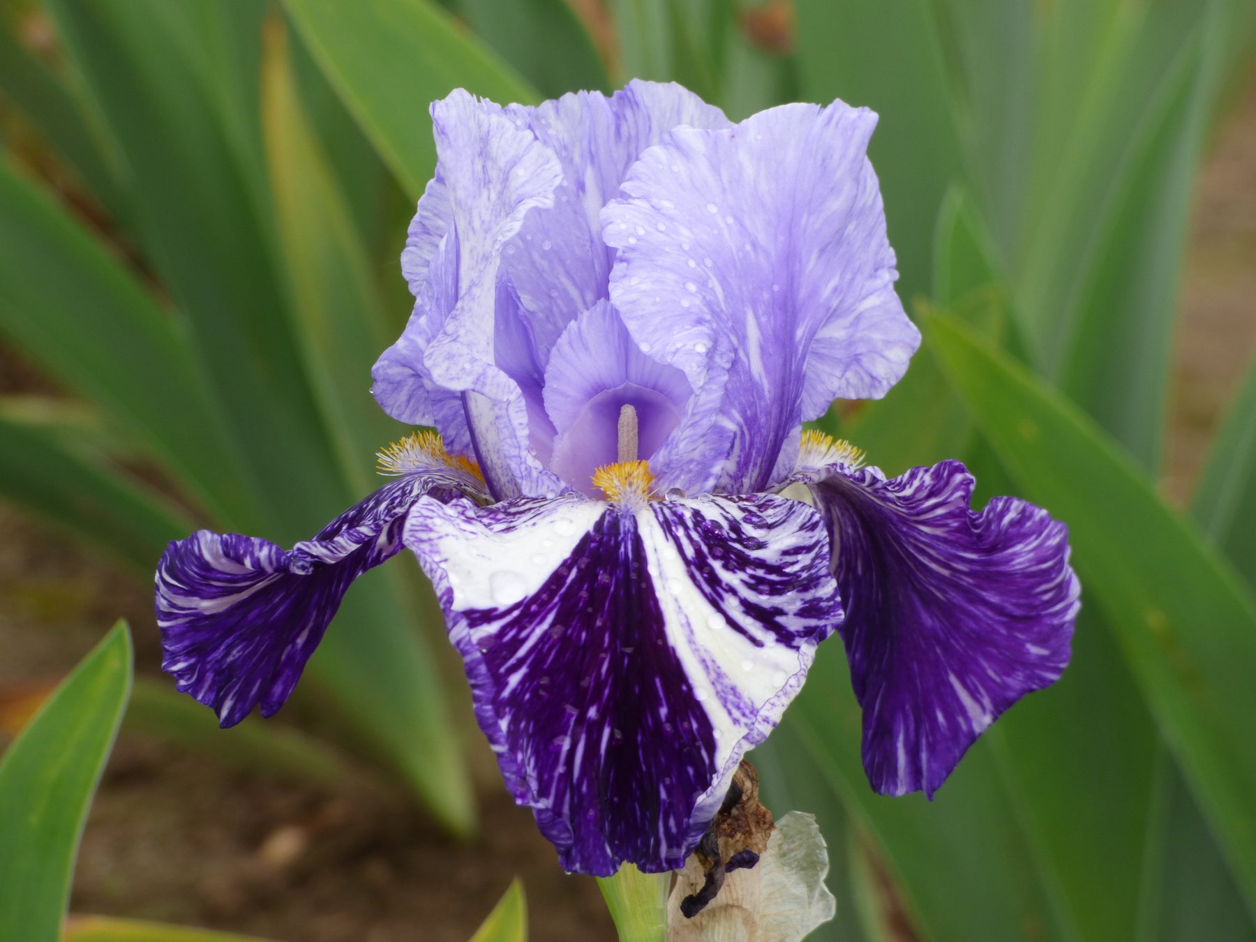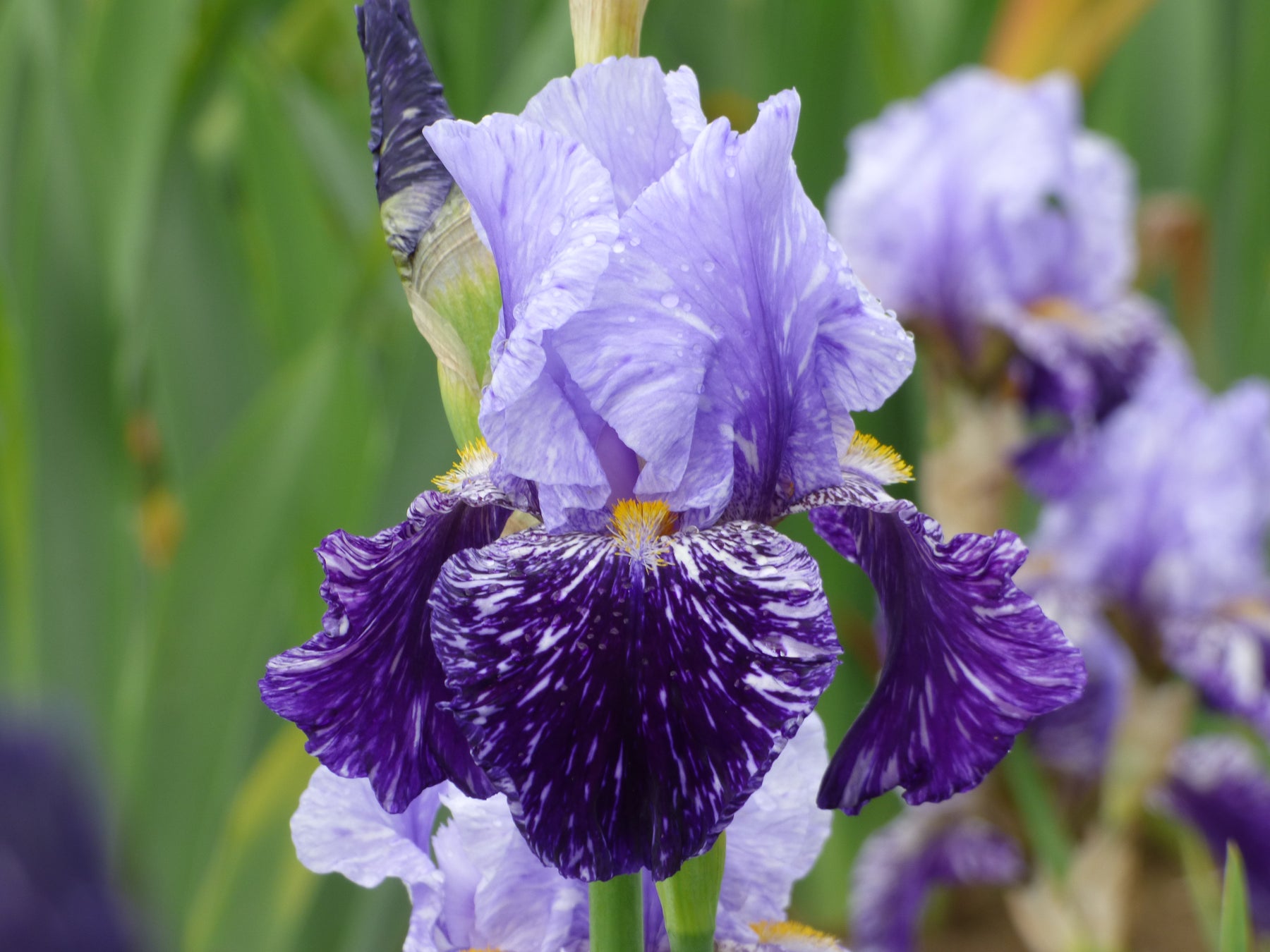 Silvery white streaks overlay the light wisteria blue standards and dark blue-violet falls of this distinctive broken color neglecta. A slight fragrance enhances Millennium Falcon's appeal.