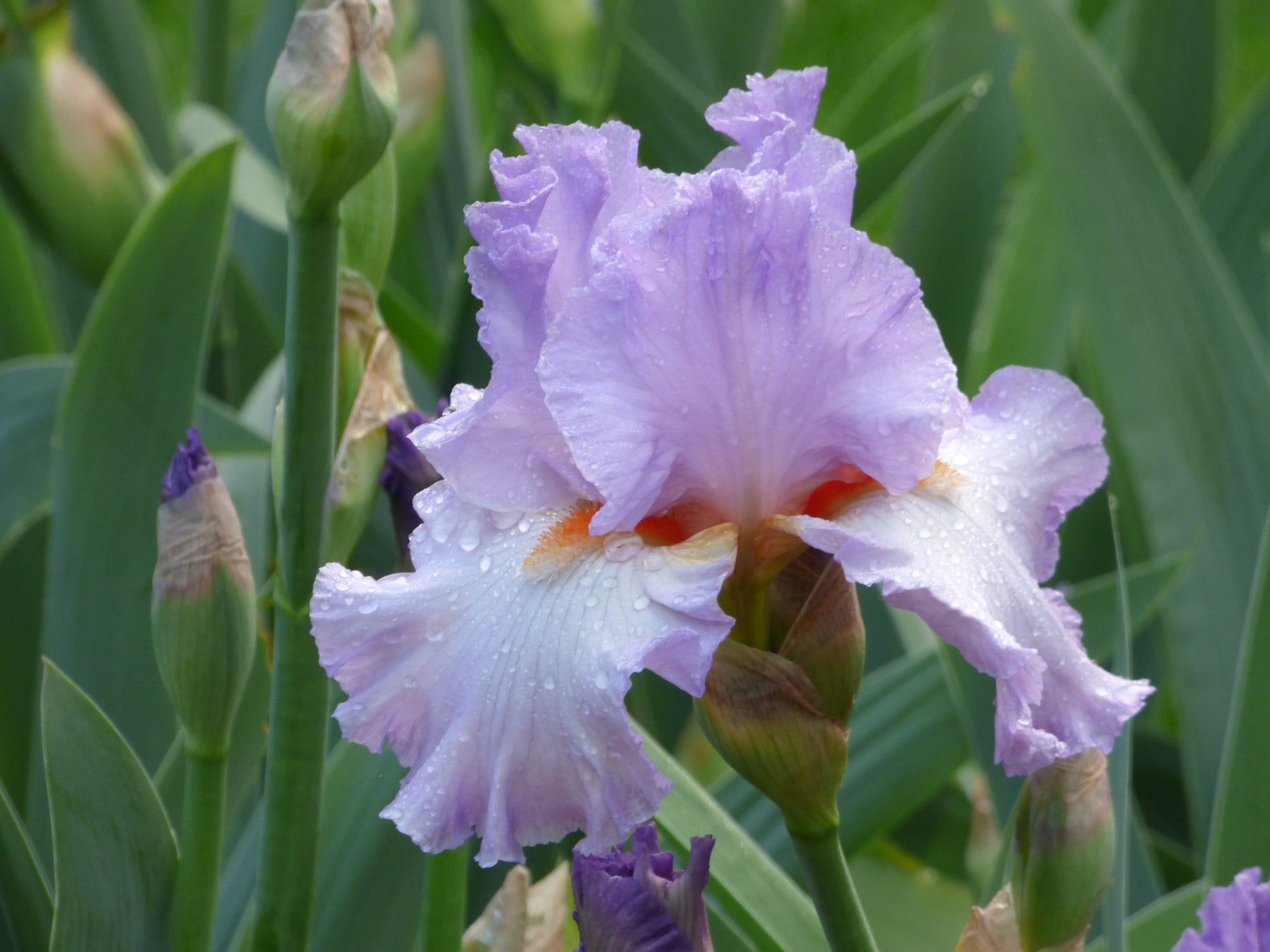 Cosmopolitan and alluring, this sensual orchid pastel is the epitome of chic. Oui Madame opens as a deeper lavender, then fades to a feminine lilac. When the open blossom is first spotted, even from across the garden, it selfishly demands complete attention! The arresting charm of lilac with the inner gold cauldron draw the visitor closer. With lan, the bright orange beard adds the perfect finishing touch Oui Madame! 8-10 buds on 38" stalks, blooms early.