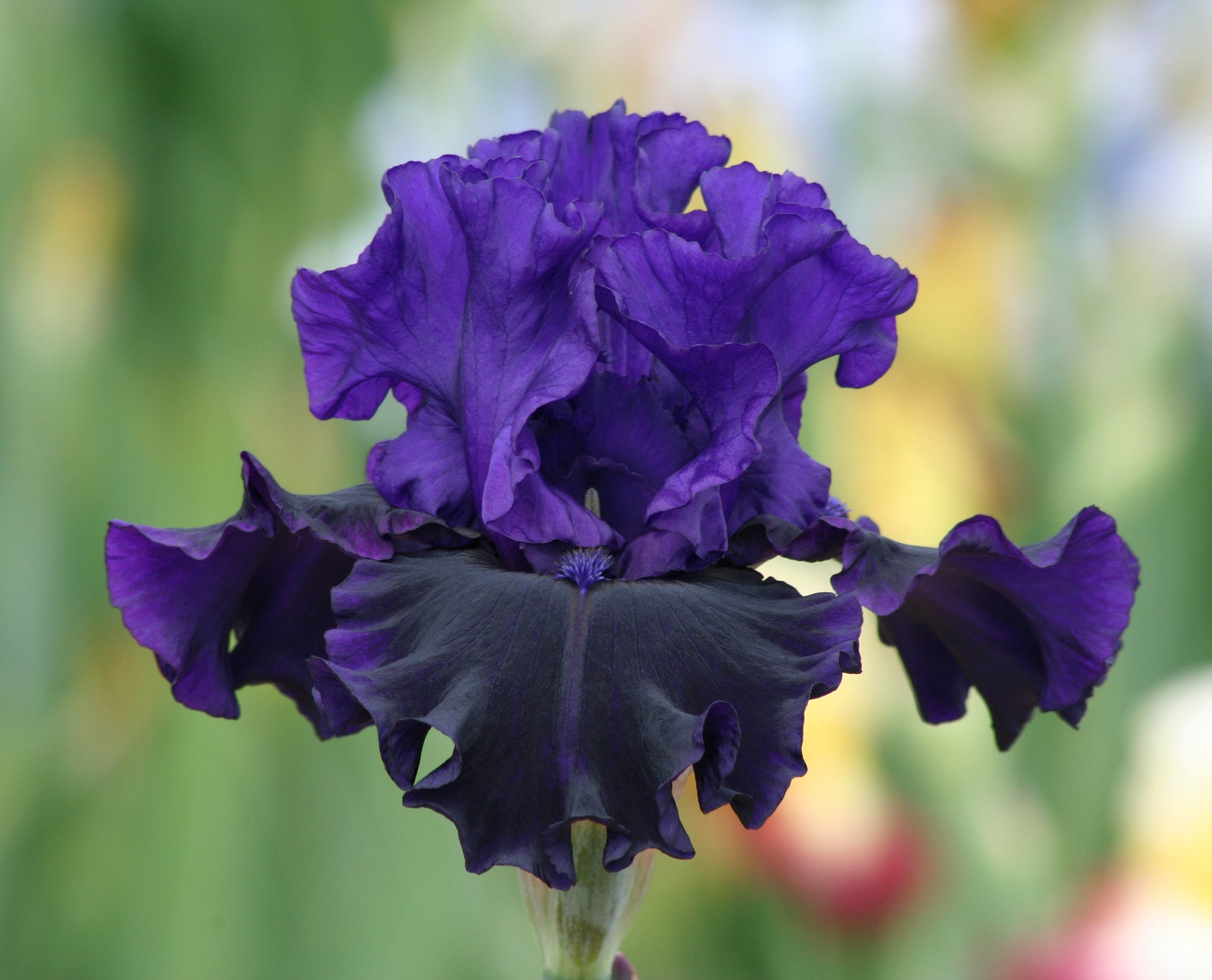 Exquisite form, large blossoms and endless ruffling contribute to Velvet Voyage's poise. Lobelia blue-purple standards set off flaring black falls. An absorbing combination of the cool and the dark. Note the subtle edging on the falls, mirroring the standards. Velvet Voyage boasts robust plant growth, flower substance, is fragrant and displays 6-10 flowers per stalk. Take advantage of this opportunity to own this sterling gem of seductive appeal.