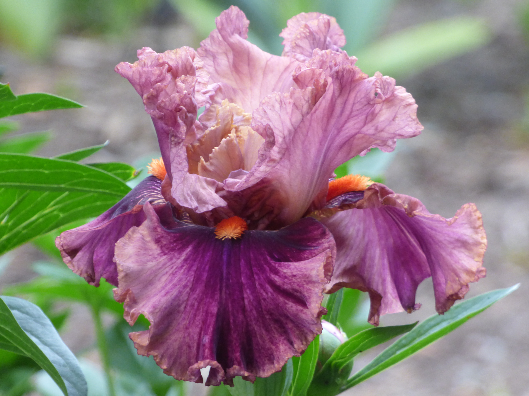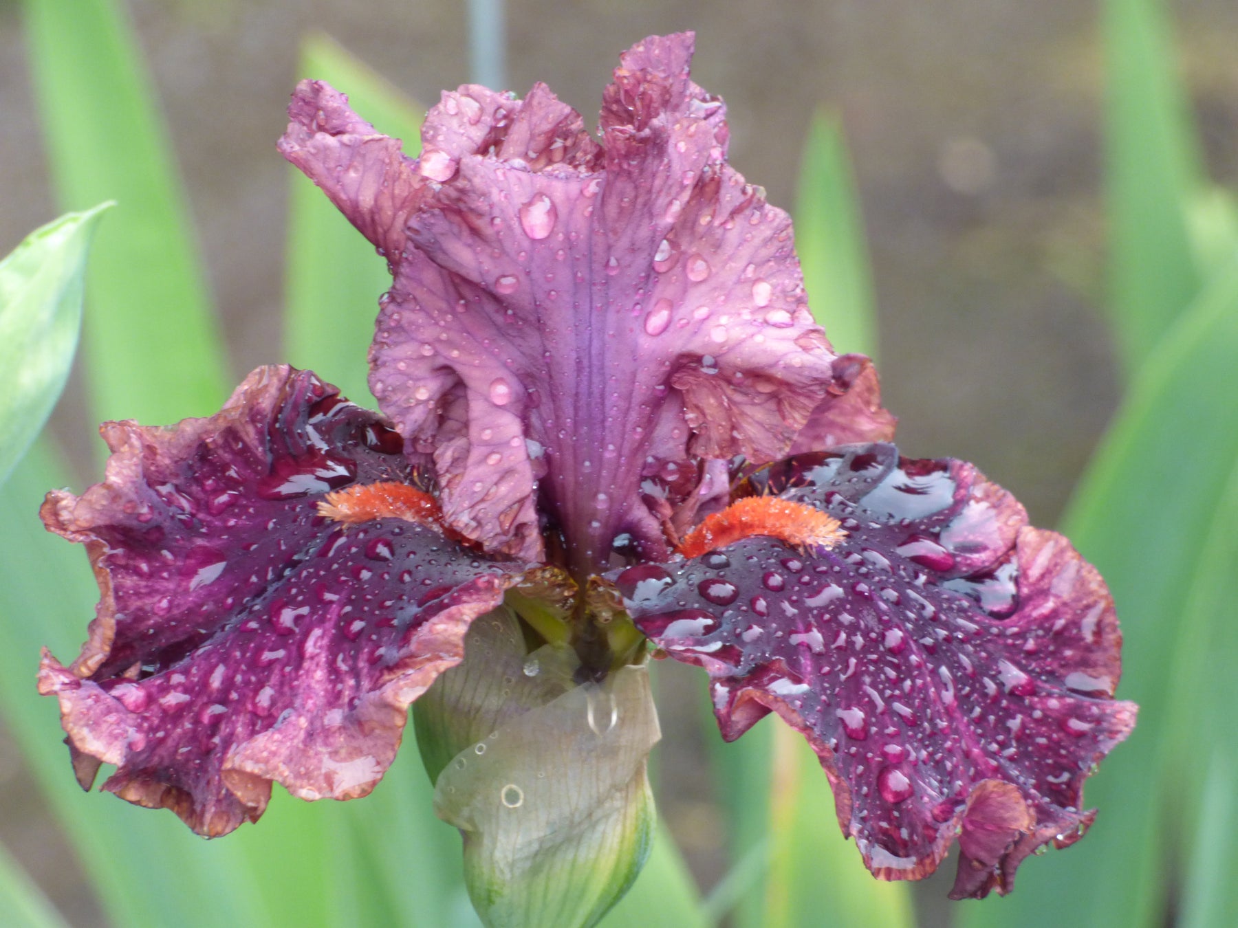 Seldom has a beard been so riveting. Set amidst the deepest red burgundy, the orange beard glows brightly. The remainder of the mid-tone flower provides an attractive contrast. Except for the center of the falls, the flower is a dusky red self, flaring with curvaceous pleats. Nine buds, most double-socketed. with 3 branches, attest to the plant vigor. Here is a worthy and innovative addition to your garden.  Wearing Rubies X Decadence