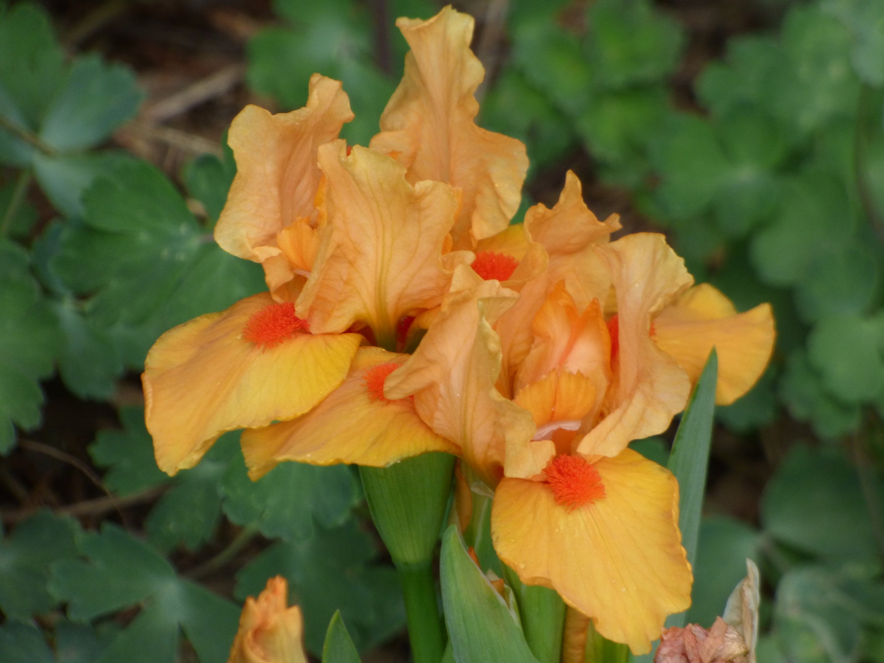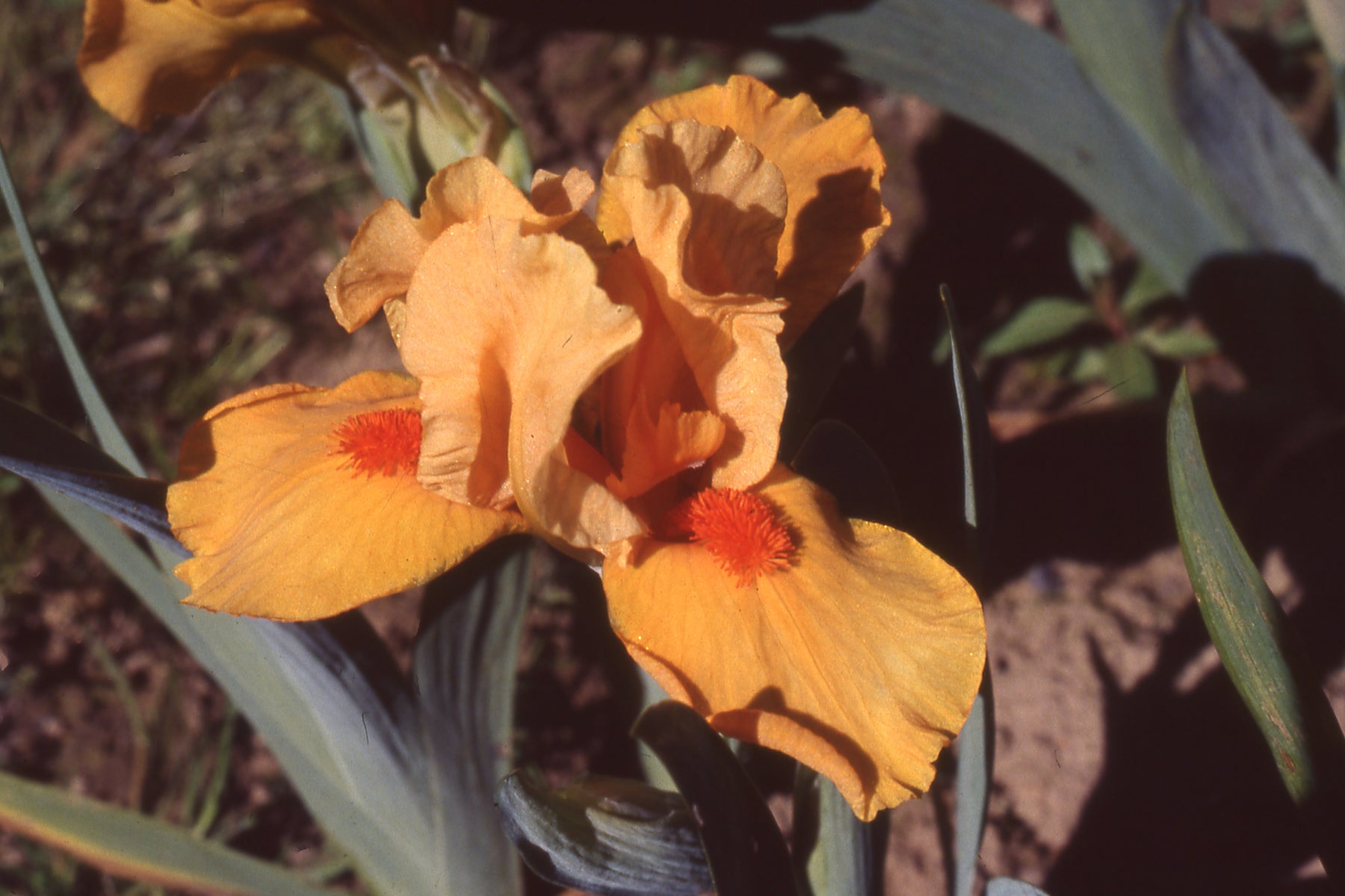 Standard Dwarf Bearded Iris: Bright orange self with fiery red beards. Ole!